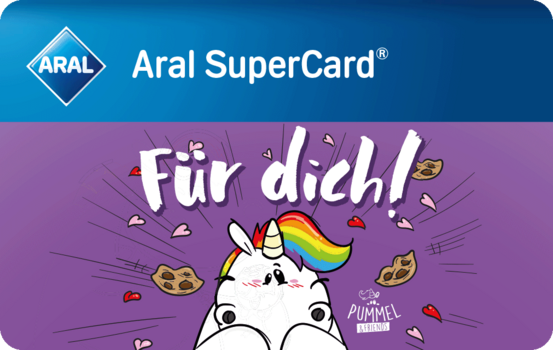 Die Aral SuperCard in der flauschigen Pummeleinhorn-Edition! Einlösbar für Aral Kraft- und Schmierstoffe, Shopware, Autowäschen und im PetitBistro. Deutschlandweit an allen Aral Tankstellen gültig.